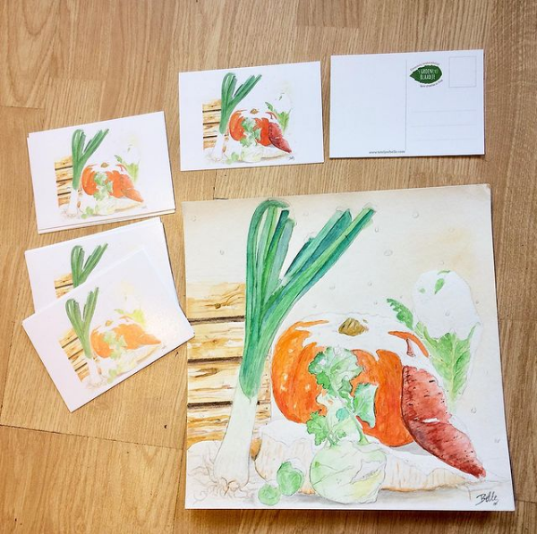 In opdracht van boerin Ilse: stilleven van besneeuwde groenten om mee te geven aan haar klanten via een postkaart
