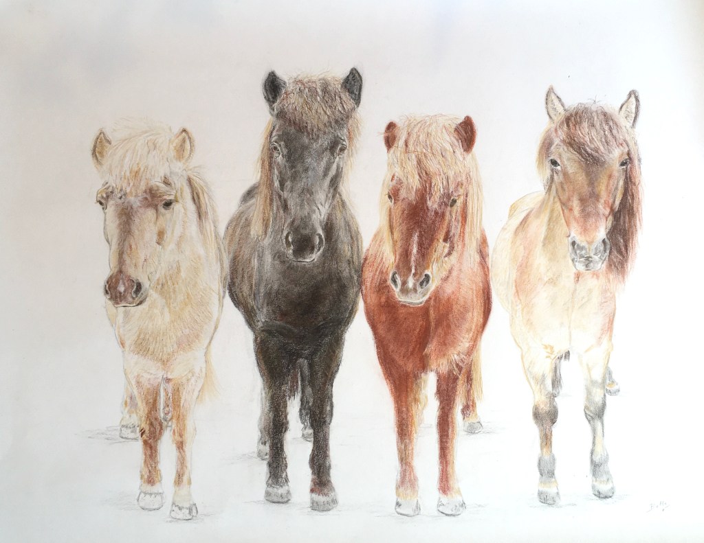 in opdracht: De IJslanders (Houtskool en aquarelpotlood, 1m op 75cm)